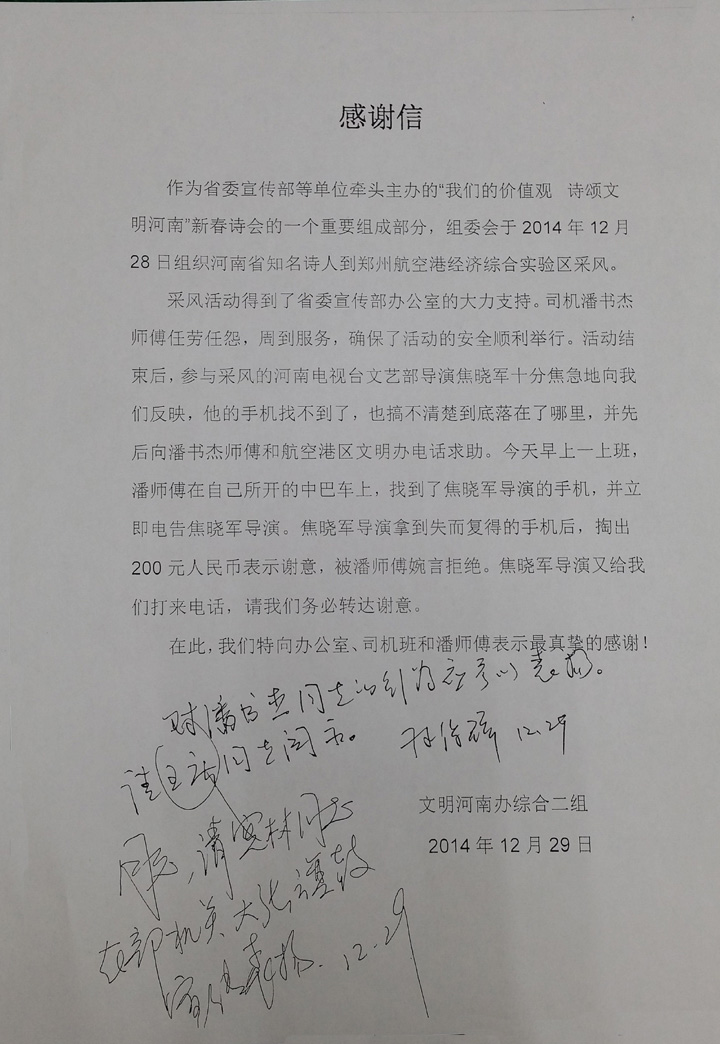 在鄭州航空港經(jīng)濟綜合試驗區(qū)活動中受表揚