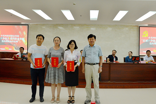 7月7日下午,省委宣傳部舉辦“忠誠(chéng)干凈擔(dān)當(dāng) 愛(ài)崗敬業(yè)奉獻(xiàn)”黨的理論知識(shí)競(jìng)賽,省委網(wǎng)信辦副主任蔡新民同志、省委宣傳部副巡視員趙鋼同志、《黨的生活》雜志社總編趙云龍同志、省委宣傳部副巡視員李文良同志等部領(lǐng)導(dǎo)出席,部機(jī)關(guān)全體黨員參加。